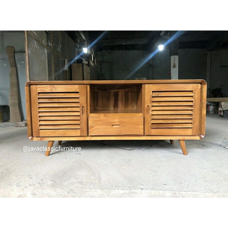 BUFET TV RETRO MEJA KONSUL MINIMALIS NAKAS PINTU 2 LACI BAHAN KAYU JATI FURNITURE MEUBEL JEPARA