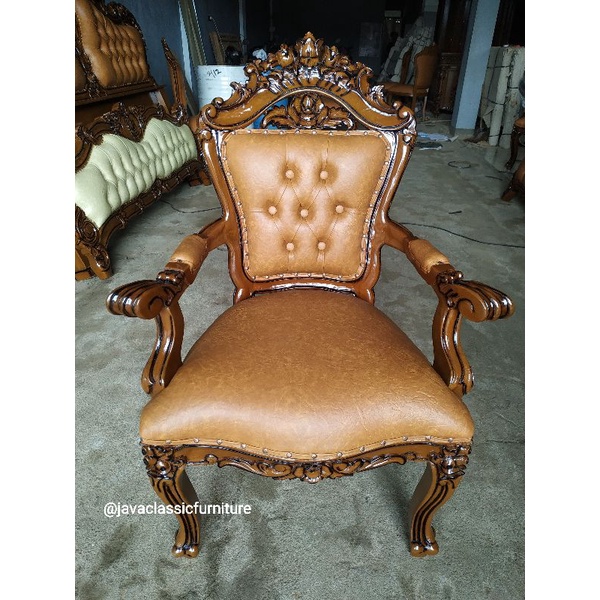 KURSI MAKAN GANESA UKIR LENGAN DINNING CHAIR TERAS JOK SALINA MEWAH BAHAN KAYU JATI NATURAL MURAH