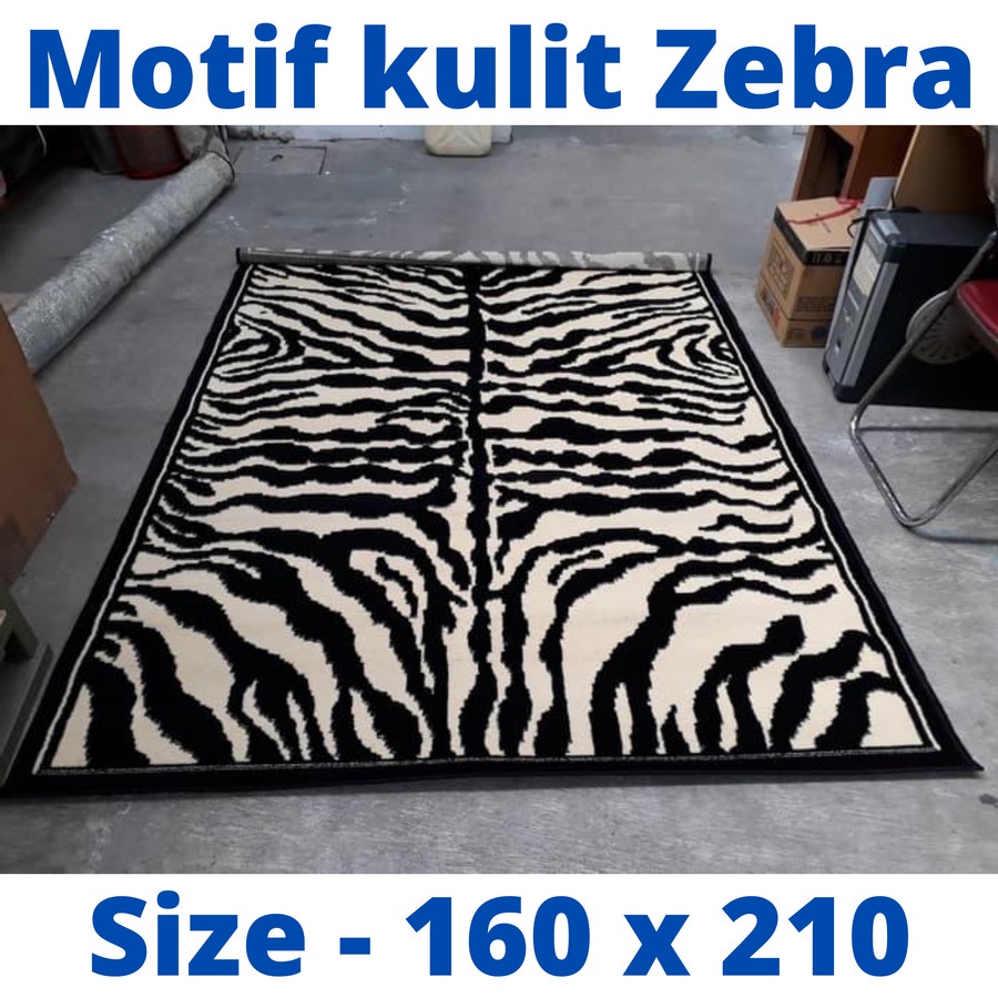 KARPET ANIMAL MOTIF ZEBRA uk.160x210 Hitam Krem, KARPET BULU, MAROC, MAROCO, BLUDRU, BULU, KARPET LANTAI