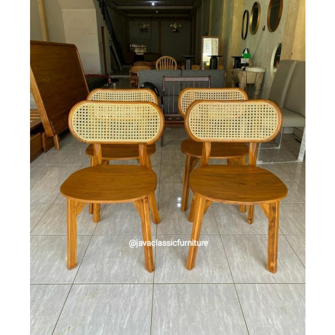 KURSI MAKAN CAFE RESTO ROTAN TERAS RETRO VINTAGE DINNING CHAIR BAHAN KAYU JATI NATURAL