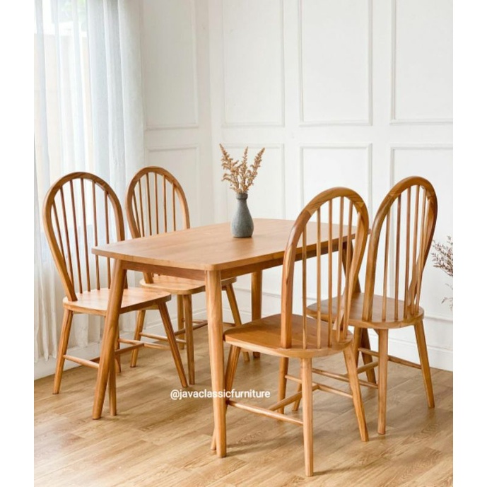 1 SET KURSI BALON MEJA TEMPAT MAKAN KELUARGA 4 PCS UKURAN 120x80x70cm CAFE RESTO RESTORAN DINNING CHAIR MINIMALIS VINTAGE RETRO MURAH BAHAN KAYU JATI BERKUALITAS FURNITURE JEPARA
