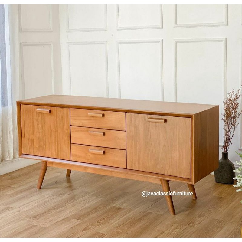 BUFET TV RETRO MINIMALIS SCANDINAVIA VINTAGE CABINET DRAWER BAHAN KAYU JATI GRADE A MURAH BERKUALITAS EXPORT FINISHING NATURAL DOFF FURNITURE JEPARA