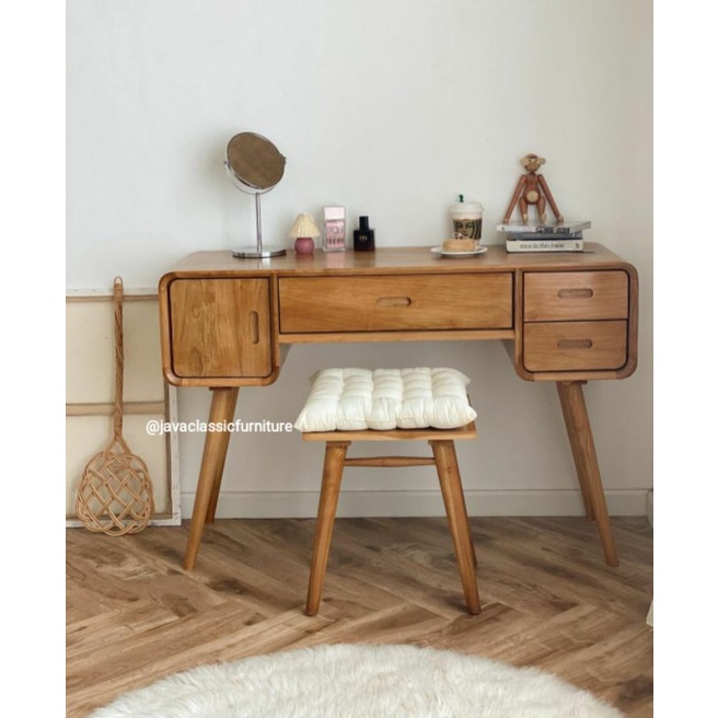 1 SET MEJA TULIS BELAJAR KERJA KANTOR KOMPUTER LAPTOP RETRO MINIMALIS + PUK DUDUK BAHAN KAYU JATI TPK GRADE A AWET KOKOH FINISHING NATURAL PRODUKSI JEPARA