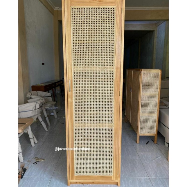 LEMARI ALMARI PAKAIAN ROTAN PINTU 1 RETRO MINIMALIS VINTAGE KABINET BAHAN KAYU JATI GRADE A FINISHING NATURAL BLEACHING BERKUALITAS EXPORT FURNITURE MEBEL JEPARA