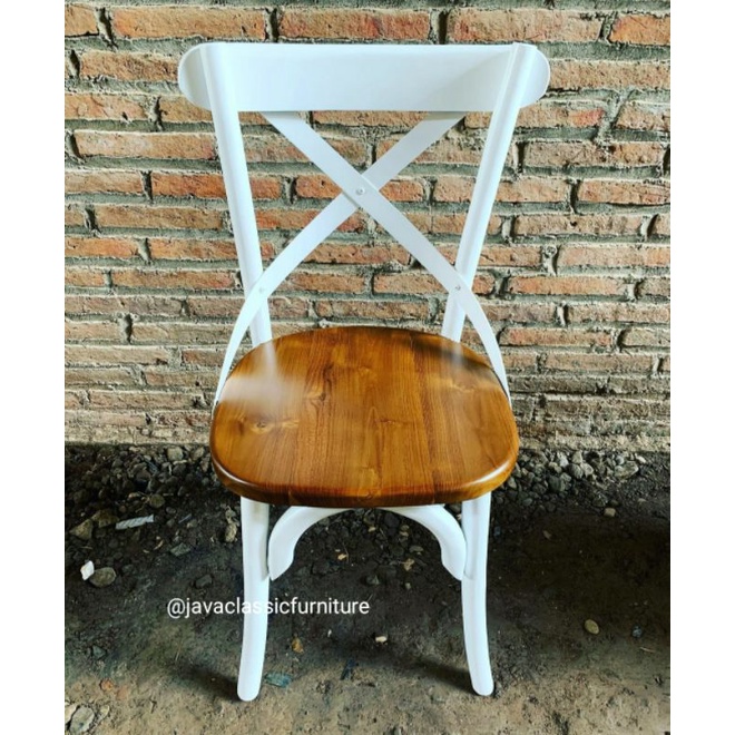 KURSI MAKAN SILANG CAFE RESTO AMERICAN STYLE BAHAN KAYU JATI FINISHING NATURAL KOMBINASI DUCO