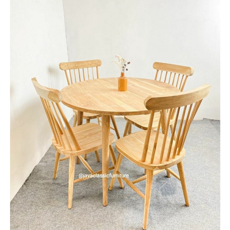 1 SET KURSI MEJA MAKAN CAFE RESTO BULAT JARI JARI MINIMALIS DINNING CHAIR RUANG TAMU RETRO COFFE KOPI BAHAN KAYU JATI NATURAL VINTAGE TERAS MURAH FURNITURE MEBEL JEPARA