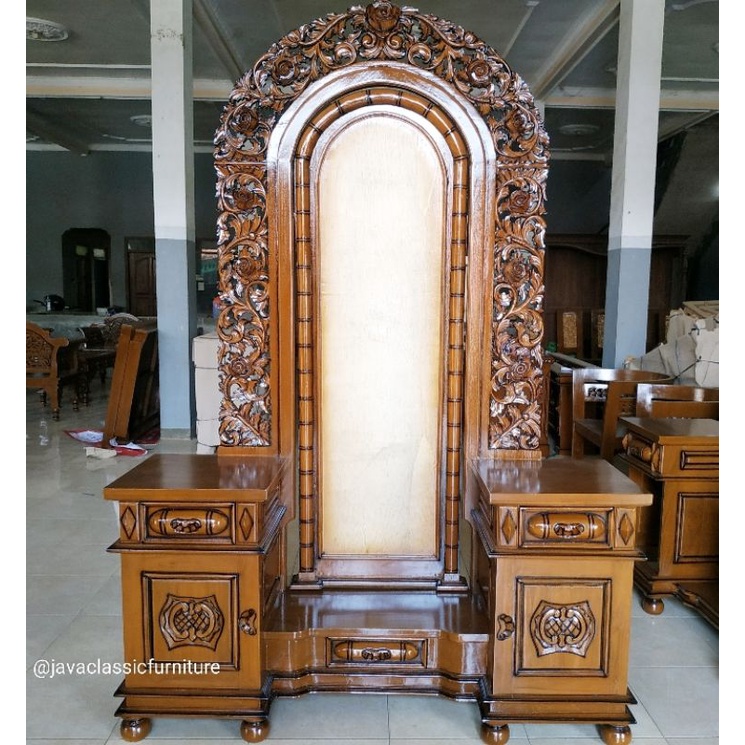 MEJA RIAS RAHWANA MAWAR UKIR JUMBO MEWAH TOLET MAKE UP ARTIS NATURAL RAJA BAHAN KAYU JATI SUDAH DILENGKAPI KACA