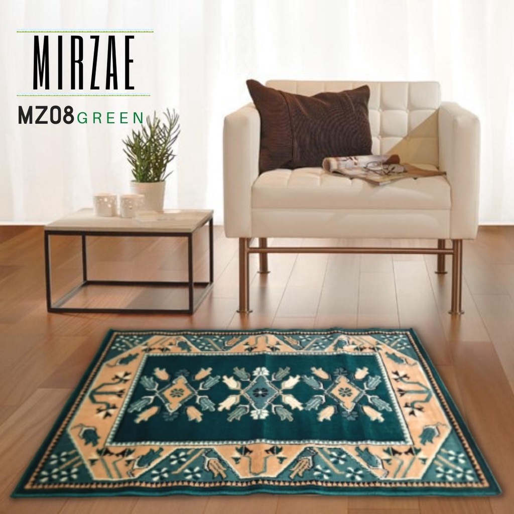 KARPET MIRZAE 100 X 150 MZ08 GREEN Karpet Lantai Hijau, Permadani Bulu Tebal