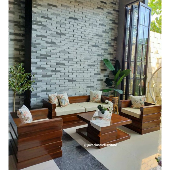 1 SET KURSI RUANG TAMU BOX MINIMALIS KAYU JATI GRADE A 211 DAN MEJA FREE DUDUKAN SOFA BUSA JOK WARNA NATURAL FURNITURE JEPARA