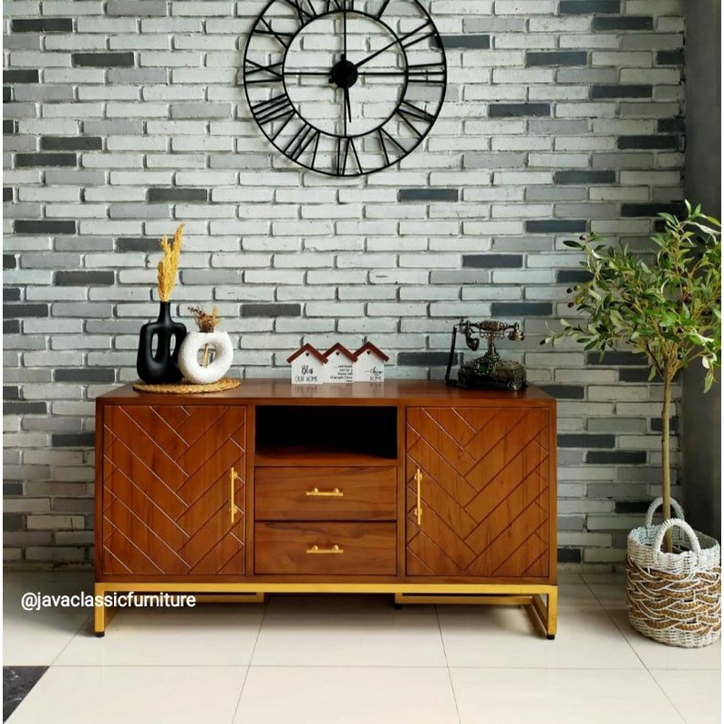 BUFET SCANDINAVIA TV RETRO MINIMALIS CUSTOM KAKI BESI CABINET DRAWER PAJANGAN RUANG TAMU BAHAN KAYU JATI GRADE A FINISHING NATURAL FURNITURE JEPARA