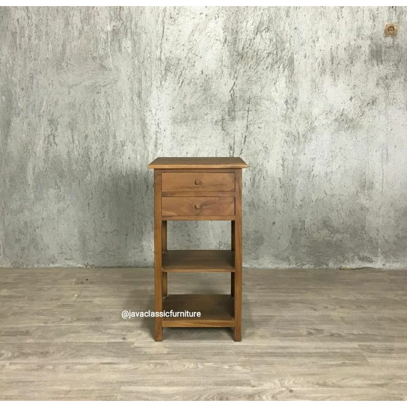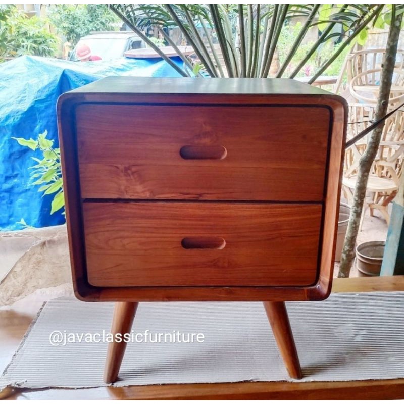 NAKAS RETRO MINIMALIS LACI 2 BUFET MINI PUK UNIK TEMPAT PENYIMPANAN MEJA HIAS KAMAR TIDUR BAHAN KAYU JATI