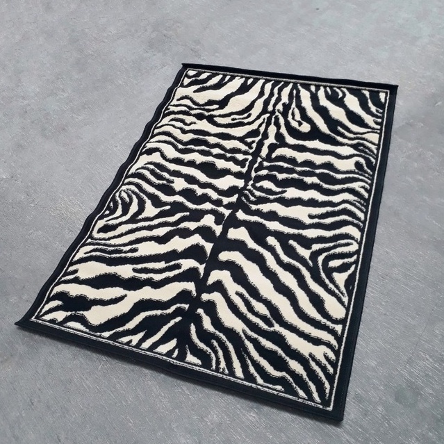 Karpet Lantai Monokrom 100x150 Animal Zebra, Karpet Permadani Bulu Tebal Black Cream