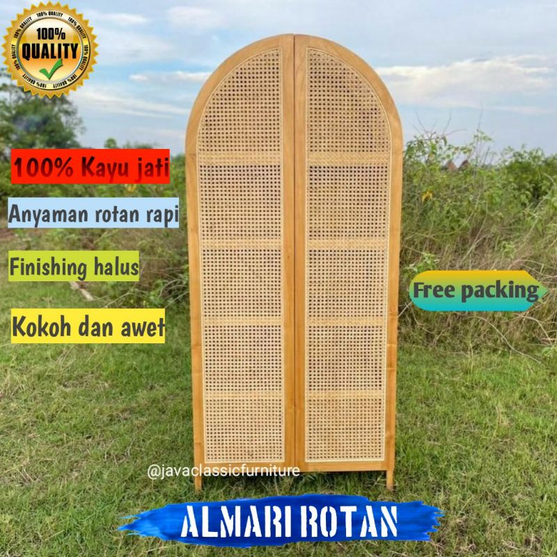 Lemari baju rotan jati minimalis almari pakaian kayu vintage retro gantung 2 pintu