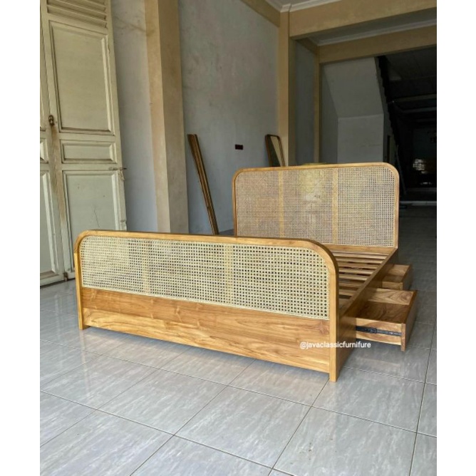 DIPAN TEMPAT TIDUR ROTAN FULL RANJANG LACI 4 DIVAN VINTAGE MINIMALIS CUSTOM MURAH BAHAN KAYU JATI TPK GRADE A FINISHING BLEACHING NATURAL BERKUALITAS EXPORT FURNITURE JEPARA