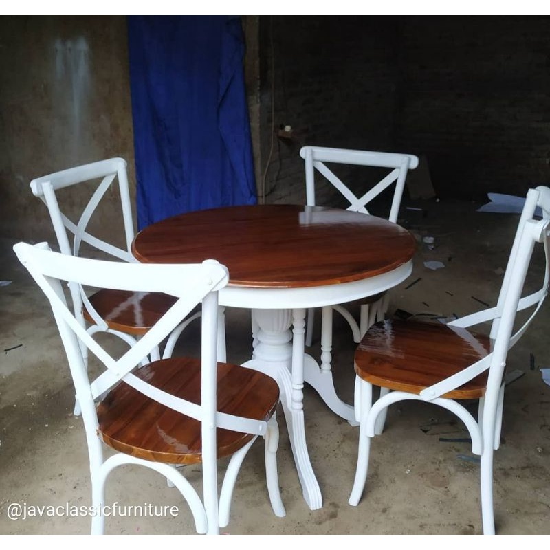KURSI MAKAN SILANG,KURSI TIFANY SILANG MEJA BULAT 1SET